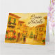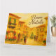 Celebre a magia do Natal italiano com este cartão de Boas Festas “Buon Natale”, apresentando uma encantadora rua de aldeia adornada com poinsettias, guirlandas e luzes de Natal brilhantes. Uma árvore de Natal lindamente decorada está no centro da cena, enquanto figuras passeando com guarda-chuvas adicionam um toque romântico à noite chuvosa. Perfeito para enviar votos calorosos com elegância europeia e espírito festivo.