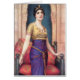 Uma bela imagem vintage de uma mulher vestida com um vestido de ouro e vestido roxo, parecendo uma princesa ou uma rainha. A placa é vazio de dentro para a sua mensagem manuscrita.