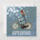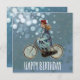 Menina de bicicleta Vintage - ela está vestindo um boné vermelho e um vestido azul. Imagem gráfica antiga com detalhes do excelente. Ele vem com luzes de anzol azul como fundo e as palavras "Parabéns" em fontes brancas. Um cartão de boas-vindas para uma amante de bicicleta. Impressos de ambos os lados. Você pode adicionar suas palavras /monogramas / imagem etc. __________________ — Cortesia da Fada Gráfica. Foi editado e aplicado em vários pontos por Alma Wad.