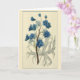 Esta flor azul impressionante é um Larkspur. Delicar flores azuis borrifadas sobre um fundo creme. Este impressão botânico foi desenhado e gravado por W. Clark em 1826.