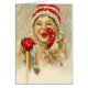 Ilustração gráfica com um menino na neve. Ele está vestindo luvas vermelhas e boné de malha vermelha e branca. Ele está gritando.