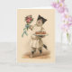 Cartão de saudação Retro / Vintage Best Wishing. Gato adorável vestido com roupas de chef e bolo de carregando e um buquê de rosas! Um cartão adorável para qualquer ocasião! Parabéns! Melhores Desejos! Feliz aniversário! Perfeito para amantes de gatos!
