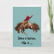Este vintage cowboy cavalgando um garanhão pintado é inspirado pela arte ocidental antiga. Mude a mensagem na frente e no dentro ou mude a cor de fundo na seção personalizada.
