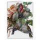 Uma ilustração do vintage de cinco pássaros azuis bonitos com asas marrons, sentando-se pròxima junto em uma árvore como chilram e cantam seus corações para fora junto. Um pássaro tem uma garganta rubi-colorida, e senta-se na parte superior do grupo, sua voz levantada na canção. Este cartão é interior vazio para sua própria mensagem.
