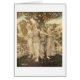 Esta é uma ilustração do vintage por Arthur Rackham para o livro 1922 intitulado, "Comus," uma história da mitologia grega. Comus (ou Komos) eram um deus dos excessos, festividade, revels e dalliances noturnos. Quatro donzelas gregas bonitas formam um círculo em torno do tronco de uma árvore de citrino. O cartão é interior vazio para sua mensagem escrita à mão.