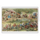 Uma ilustração vintage de uma cena movimentada e movimentada num campo como uma comunidade de fadas, elfos, pássaros e borboletas se reunem em um que só poderia ser descrito como fantasia ou sonho. Este cartão é vazio de dentro para sua própria mensagem.