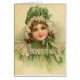 Uma ilustração antiga de Frances Brundage de uma menina adorável com olhos grandes, lábios de broca e copos vestindo um vestido verde e capota correspondentes, ambos aparados em rendas brancas. A artista Frances Brundage (1854-1937) era nascer em Newark, NJ e era mais conhecida por ilustrações de lindas e adoráveis crianças em cartões postais, calendários e cartões de natal, particularmente Dias de os namorados. Ela mais tarde viveu e trabalhou em Washington, D.C., Massachusetts e Nova York. Ela estava à frente do seu tempo, na medida em que seu trabalho de arte também incluía crianças nativas americanas, africanas, holandesas e irlandesas. Artista prolífica, ela também ilustrou romances e coleções literárias. Este cartão é vazio de dentro para sua própria mensagem.