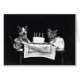 Uma fotografia do vintage que caracteriza dois gatinhos nos vestidos que sentam-se em uma mesa com um bolo de aniversário e em velas entre elas. A mensagem dentro do cartão diz, "em seu dia especial, pode o mais agradável e as surpresas as mais doces vêm sua maneira. Feliz aniversario!" O fotógrafo americano Harry que Whittier livra (1879-1953) era famoso para vestir animais na roupa e os levantar em situações humanas que fotografam então as. Algumas de suas fotos tiveram subtítulos, mas não fizeram mais. Este cartão é interior vazio para sua própria mensagem.