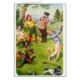 Uma ilustração do vintage de um grupo de gatos no campo de golfe, vestido no vestuário do golfe, e em ter a época de suas vidas. Um gato toma um balanço com seu clube de golfe, batendo sobre o transportador e scaring fora de um cão que vá funcionar da cena. O cartão é interior vazio para sua própria mensagem.