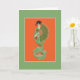 Um cartão de cumprimentos de aniversário com uma gueixa japonesa segurando um fã. A ilustração é de um cartão postal antigo Art Nouveau, datado antes de 1923. Um plano de fundo e um quadro foram adicionados. Dentro Verso - Melhores Desejos no seu Dia Especial - Feliz Aniversário!