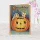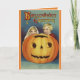 Foto bonita e vintage de duas crianças escondidas atrás de uma abóbora grande, com a mensagem "Saudação do Dia das Bruxas" é mostrada neste cartão de saudação. A mensagem dentro diz: "Que o seu Halloween seja cheio de uma boa e antiga FUN!", um cartão de excelente para enviar crianças, família e amigos para o Halloween!