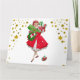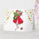 O Natal como parecia na década de 1950 com esta trabalho de arte retrô de uma senhora vestida com um vestido de cheio em vermelho e verde.