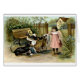 Cartão Vintage - menina & Dachshunds impertinentes,