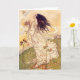 Uma ilustração vintage intitulada "Um Aniversário", de Florence Susan Harrison, retrata uma linda mulher com cabelos escuros longos, parada em um campo de flores encharcado. Ela pegou um buquê de flores e as segura em ambas as mãos como se uma oferta a um pequeno pássaro que paira sobre ela. A artista Florence Susan Harrison (1877-1955) foi nascer no conselho do Castelo Windsor, um navio que se dirigia de Londres a Brisbane, Austrália. O seu pai, Norwood Harrison, era um mestre mariner e capitão de navio, e a sua família passou muito tempo no mar com ele. Entre as viagens, Florence frequentou uma escola dirigida por uma tia-excelente em Folkestone, Inglaterra. Como adulto, Florence viveu na Inglaterra e por algum tempo na Bélgica. Ela foi ilustradora de poesia e livros infantis Art Nouveau e Pre-Raphaelite, incluindo alguns livros da sua própria poesia. Após a morte de Florença, a sua trabalho de arte foi muitas vezes atribuída por engano a Emma Florence Harrison, uma artista da era vitoriana que exibiu na Academia Real no século XIX. Até hoje, a trabalho de arte de Florence Susan Harrison pode ser encontrada em muitos sites de arte na Internet atribuídos incorretamente a Emma Florence Harrison. Este cartão é vazio de dentro para sua própria mensagem.
