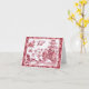 Em 1898, um senhor inglês enviou as saudações de Natal e Ano Novo à família, amigos e conhecidos com um pequeno cartão dobrado. A frente foi agarrada com uma imagem típica de salgueiro azul e seu monograma gravado em ouro. O dentro transmitiu a sua amável mensagem e a data. Para nós, o monograma foi retirado e temos um desenho oriental encantador em vermelho clássico. É uma design maravilhosa para decoração doméstica, roupa, correspondência e acessórios pessoais.