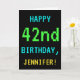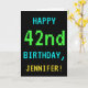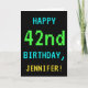 Este simples e divertido design de cartões de aniversário apresenta uma mensagem como "FELIZ 42º ANIVERSÁRIO, JENNIFER!". Ele também apresenta uma aparência divertida e pixelizada que lembra a aparência dos jogos de computador da era retrorada de 8 bits dos anos 1980 e início dos anos 90. O nome na frente e a mensagem no dentro podem ser personalizados. Pode ser enviado ou dado a alguém que comemora seu quarenta e segundo aniversário e que gosta de jogar jogos de computador mais antigos. [~Z0000099]