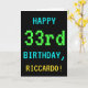 Este simples e divertido design de cartões de aniversário apresenta uma mensagem como "FELIZ 33º ANIVERSÁRIO, RICCARDO!". Ele também apresenta uma aparência divertida e píxelada que lembra a aparência de videos games antigos ou clássicos dos anos 1980 e início dos anos 90. O nome na frente e a mensagem no dentro podem ser personalizados. Pode ser enviado ou dado a alguém que comemora o seu trigésimo terceiro aniversário e que gosta de jogar videos games antigos. [~Z0000099]