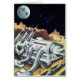 Cartão Vintage Science Fiction, Estação Espacial na Lua