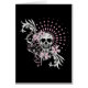 Crânio feminino com detalhes de rolagem, flores e bastante cor-de-rosa para as senhoras.