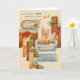 Ilustração colorida e adorável de um velho esfregando suas costas em uma banheira velha de pé de galinha em um antigo banheiro típico com espelho, margarida, e um barril com uma saliência para água de banho e enxaguando fora. Suas roupas e chapéus são colocados em uma cadeira e suas botas se sentam sob um banco e uma chaleira. O ditado de aniversário diz: "Por que não se limpar e nos dizer a sua idade?" Um presente divertido ou ideia de aniversário para alguém que talvez queira esquecer alguns aniversários.