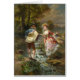 Trabalho de arte de Vintage de Cesare Agostino Detti apresenta um casal numa caminhada no campo. Ovelhas e pastores de ovelhas ao fundo enquanto o casal continua caminhando e chega a um riacho de água em ruínas. O cavalheiro passa pelo riacho para o outro lado, então vira-se e oferece sua mão para ajudar a senhora a atravessar. O artista italiano de Spoleto, Cesare Agostino Detti (1847-1914), estabeleceu a sua reputação de pintor talentoso daquilo a que se chama "figuras de fantasia" porque apresentavam pessoas de dias passados vestindo roupas elaboradas, como bolas de fantasia e outros eventos da sociedade. Ele também pintou assuntos históricos. Detti mudou-se para Paris nos anos 1870, onde viveu até à sua morte. Seu nome do meio é às vezes chamado Agusto, Aguste ou Agostino em biografias online. Ele assinou sua trabalho de arte simplesmente como C. Detti. Este cartão é vazio de dentro para sua própria mensagem.