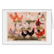 Uma ilustração do livro de texto do vintage de "tipos de raças de condução da galinha produzida americana." A ilustração colorida inclui o nome de cada raça da galinha. Este cartão é interior vazio para sua mensagem escrita à mão.