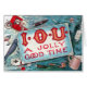 Pessoas de ilustração Vintage com design de festas e estilos de vida apresentando uma variedade de vícios e o texto IOU A Jolly Good Time. Celebrar com o bebendo Champagne, uma caneca de cerveja, fumando um cachimbo, charutos e cigarros, acariciando mulheres, dirigindo imprudente e um baralho de cartas e chips para jogar pôquer e jogar.