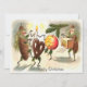 Vintage era vitoriana cartão de Natal com pinhas dançantes, ameixa e vela.
