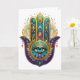 Cartão Violet Green Gold Petals Hamsa Turquoise Third Eye