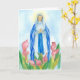 Uma carta de boas-vindas em homenagem à Bênção Virgem Maria Mãe de Deus, quando a honramos pelo mês de maio, decorada com uma imagem estilizada dela num jardim de flores lírios calla e uma luz de ouro sobre sua mão ilustrada com aquarela. Na dentro estão mais flores de lírio. As flores de Lily Calla significam fé, pureza e renascimento na Língua das Flores e foram incluídas em muitas pinturas históricas que incluem a Mãe Abençoada. Você pode editar todo o texto. Experimente este design em outros produtos que o Zazzle produz, como um imã ou um cartão postal.