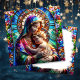 Cartão de Natal personalizado com o verso Bíblia, Luke 1:37, "Porque nada será impossível com Deus." Cartão de Natal religioso. Frente é uma Virgem Maria com Jesus Bebê no estilo do mosaico azulejo. Adicione sua própria citação de Bíblia favorita e cartões de natal na dentro na área personalizar.