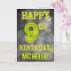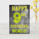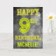 A frente deste design de cartão de aniversário editável e de tema assustador apresenta a mensagem "FELIZ ANIVERSÁRIO DE 9 ANOS" com personagens tendo uma aparência de aura brilhante e assustadora, em um padrão de fundo inspirado em uma névoa cinzenta e misteriosa. A frente também apresenta um nome de destinatário personalizado. O interior apresenta uma mensagem de saudação de aniversário que pode ser personalizada. Um cartão de aniversário editável como este pode ser uma maneira especial de enviar uma saudação de aniversário para alguém que está celebrando seu 9º aniversário.