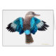 O design original das belas artes azul raro de um Kookaburra voado de Austrália pelo desenhista Carolyn McFann imprimiu em um cartão da qualidade para amantes do pássaro.