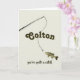 Dê este cartão ao pescador da sua vida e diga-lhe que presente ele é! A cana de pesca desenhada à mão, o bassê pintado à mão com aquarela, dão a este cartão um sentimento vintage e clássico.