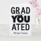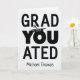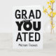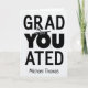 Cartão de graduação único com a palavra "VOCÊ" em vez da letra "U" em graduado. Adicione o ano ao boné de formatura que está sentado na letra, "O". Adicione qualquer nome à parte inferior da placa de impressão do notebook. ©Christie Black