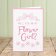 Faça seu pedido especial ainda mais mágico com o nosso adorável cartão "Você será minha garota florescente?"! Apresentando uma bolinhas rosa encantadora, flores brincalhadas e um design arco doce, esta carta é perfeita para pedir a essa garotinha especial que se junte à sua festa de casamento. Ela vai adorar o design bonitinho e divertido, e você vai adorar o quão fácil é fazê-la se sentir especial. Impresso em papel de alta qualidade, este cartão é certamente um guardião que ela apreciará. Perfeito para noivas e planejadores de casamento querendo adicionar um toque de chimia às suas propostas de festas noivas!