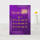 Cartão de aniversário de texto roxo e amarelo escuro.