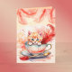 Gatinhos adoram penas, nós sabemos disso; então aqui está uma gatinho em um grupo com muitas penas vermelhas adoráveis ao seu redor. dentro de vazio, então você tem espaço para escrever algumas palavras preciosos em sua própria letra para torná-la muito mais especial. Imagem projetada com software de inteligência artificial. Parte da Coleção "Chá e Pussycats".