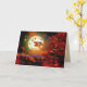Um cartão do Dia das Bruxas de um vôo da bruxa após uma Lua cheia assustador na noite do Dia das Bruxas, agitando acima as folhas de outono. Meu verso original no interior é customizável.