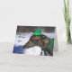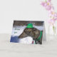Tami, uma linda galga cinza toda pronta para ir atrás daquele pote de ouro! Cartão perfeito para quem ama galgos ou é louco por cachorros. Celebre o uso do verde enviando este cartão divertido! "Vou Corrida Você!" é de uma fotografia original e está sob meu direito autoral.