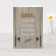 Cartão de aniversário para qualquer avô/avô que ame pescar. A frente apresenta silhuetas de vareta e de rolo, juntamente com um peixe saltante sobre fundo de grãos de madeira, com efeito angustiante. Peitos de pesca inteligentes na frente e dentro trazem um sorriso.