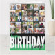Crie seu próprio cartão de aniversário feliz. O modelo de foto está pronto para que você adicione 31 de suas fotos favoritas, 30 das quais são exibidas em formato quadrado / instagrama em uma simples colagem de fotos no estilo grade e a principal está em formato de retrato digno de enquadramento no dentro. A frente do cartão de aniversário é escrita com a tipografia e a escrita de pincel modernas e sobredimensionadas. Atualmente se lê "feliz aniversário para o vovô" com blocos coloridos estilizando em verde, preto e branco. Você pode editar o texto personalizado na frente e também pode personalizar o dentro de saudação.