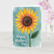 This card features a stylized flower centered in the design, with a dark brown, seed-like core textured to feel deep and detailed. Wide petals fan outward in a warm gradient, shifting from sunny yellow at the tips into softer orange and a gentle rosy blush closer to the center, like a tender glow held close ❤️. A sturdy deep green stem rises from below, and a single leaf leans out to the side, adding a calm, balanced touch that feels quietly affectionate. Behind it all, the background is a teal wash with a watercolor look, showing soft variations in tone and slightly uneven edges like open sky. In the lower left corner, a short message appears in flowing white lettering, standing out clearly against the teal. The overall layout leaves plenty of breathing room around the bloom, giving the scene an easy, friendly warmth 🌼. The petals show yellow on the outer edges fading into orange and blush near the dark brown center, with the white text anchored at the lower left.