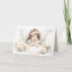 Rapariga de anjo de aquarela com rosas de branco para o aniversário, comunhão, confirmação, batismo, dedicação ou outro evento religioso. O texto pode ser editado.