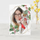 Cartão de Saudação de Natal | Watercolor Holly e Red Berries - Alegria na caligrafia dourada - com uma estrutura dourada ao estilo de terrário geométrico que rodeia a sua fotografia 5x7 na frente com a sua mensagem de feriado dentro - Arte Original © pela WhimsicalArtwork™ Esta é parte de uma mistura e corresponde à Holiday Watercolor Holly e à Red Berries Collection.