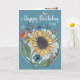 Um Cartão De Aniversário Feliz De Girassol. Este Cartão de Aniversário é uma maneira maravilhosa de dizer "Parabéns" a alguém especial. Ele apresenta as palavras um belo design de girassol na frente do cartão e então lindos girassóis, flores e palavras dentro do cartão. O design de girassol foi desenhado à mão e criado por Wild no designer de Flores, Jillee K. Se você deseja qualquer variação a este design, como palavras diferentes, clique no botão Mensagem abaixo e deixe Jillee saber sua solicitação. Por favor, não hesite, pois Jillee adoraria ouvir de você e saber o que você adoraria dar à sua mãe.