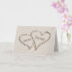 Corações de praia em design de areia derivante com nomes de casal para parabéns de casamento. Os nomes são editáveis.