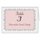 Cartão bonito do número da mesa da recepção de casamento feito no branco e no rosa. Um quadro de prata delicado do rolo cerca a área de texto cor-de-rosa. O texto é inteiramente customizável no estilo de pia batismal, nas cores, e nos tamanhos.