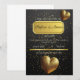 Black card of wedding invitation with golden hearts these an special design for your special day