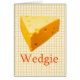 Fundo amarelo da xadrez com um bloco de queijo, etiquetado Wedgie